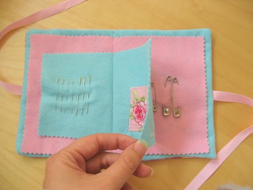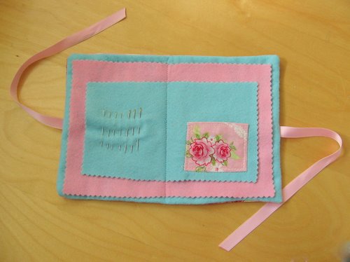 Mitt första projekt var en nålbok eller nålbrev. Inspirerad ur boken SY! av Cath Kidston. Den är gjord av ett blommigt tyg och tygfilt från Panduro.