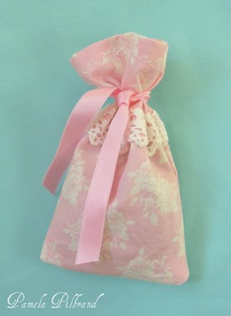När jag kom hem åkte tyg, spets och blommor fram och så föddes den här romantiska lavendelpåsen. :)